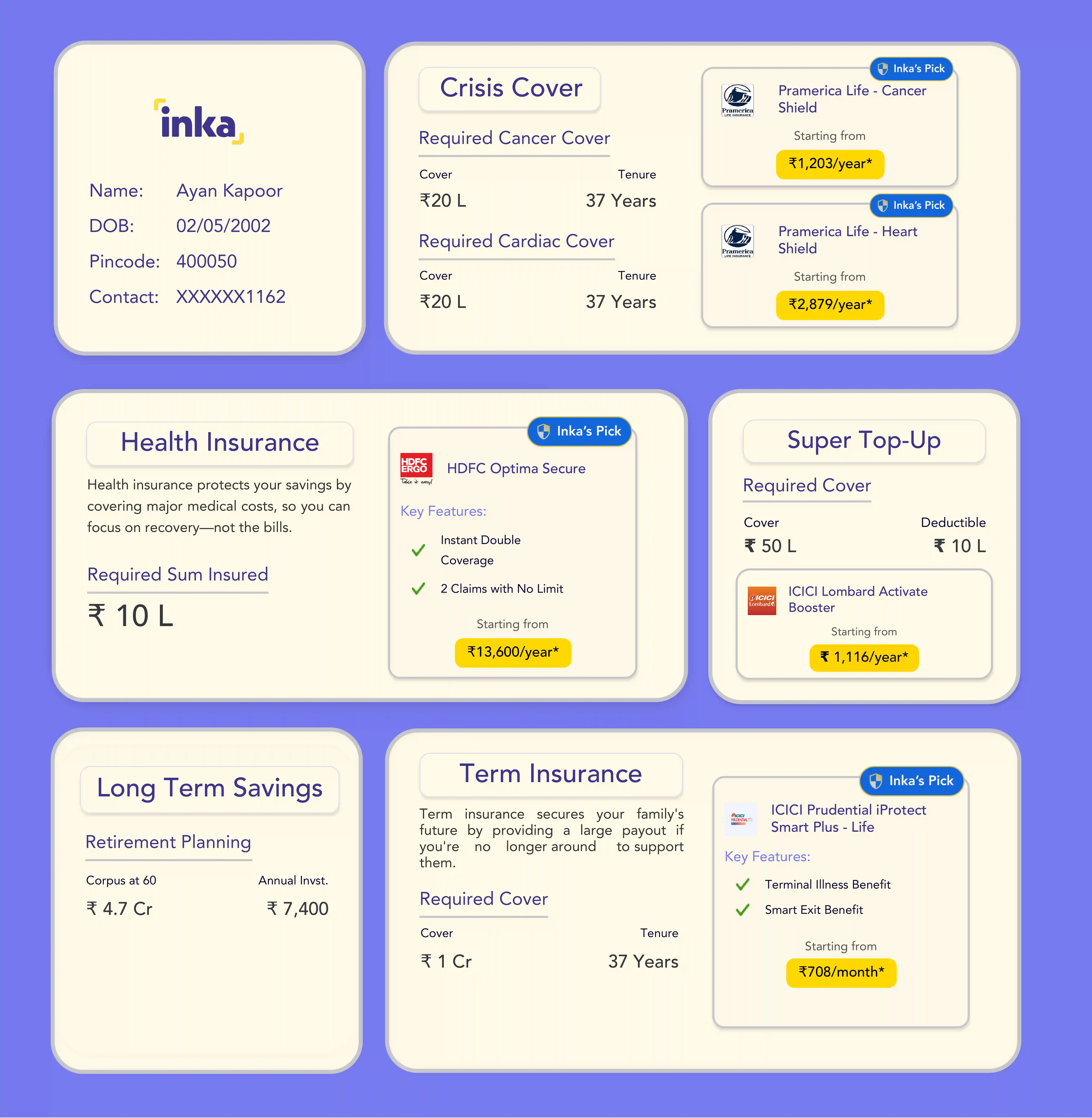 @Inka Insurance helped us navigate the complex world of health insurance brilliantly. There was personalized support, customized advice and prompt action which allowed us to get the right insurance seamlessly.